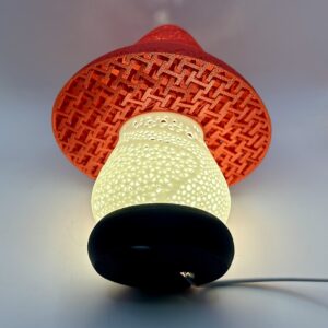 Découvrez cette lampe champignon magique, imprimée en 3D avec un design inspiré du motif Voronoi ! Sa structure ajourée unique laisse passer la lumière de manière douce et apaisante, créant une ambiance féerique dans n’importe quelle pièce.