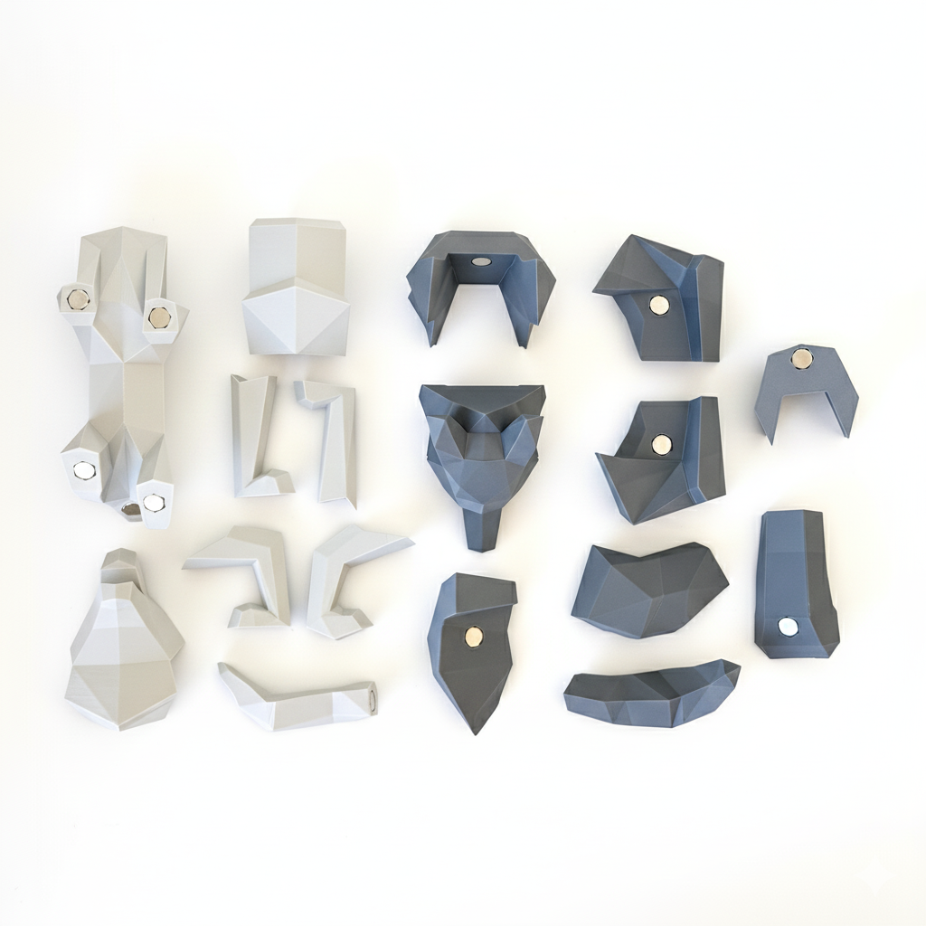 Conçu avec une grande précision, ce puzzle est composé de 17 pièces imprimées en 3D et équipées de 34 aimants intégrés à la main.